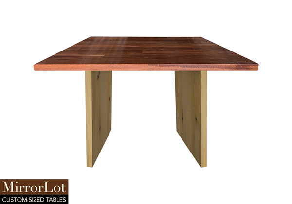 This natural mahogany table brings rustic charm to any room in your house. It is square, but can be customized to your desired shape and size. The square shape table top is made from solid mahogany wood and the table legs are