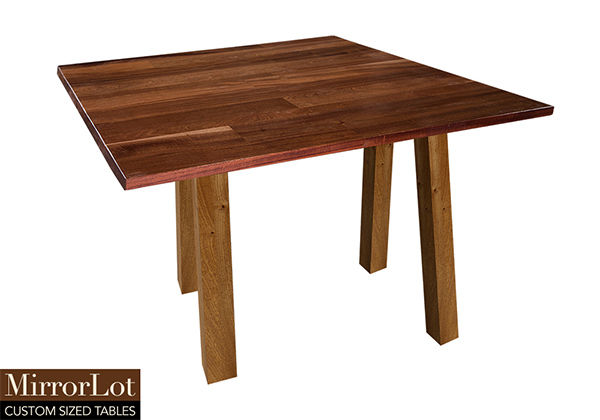 This natural mahogany table brings rustic charm to any room in your house. It is square, but can be customized to your desired shape and size. The square shape table top is made from solid mahogany wood and the table legs are