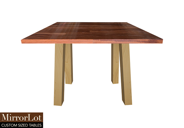 This natural mahogany table brings rustic charm to any room in your house. It is square, but can be customized to your desired shape and size. The square shape table top is made from solid mahogany wood and the table legs are