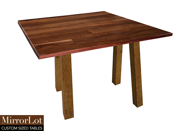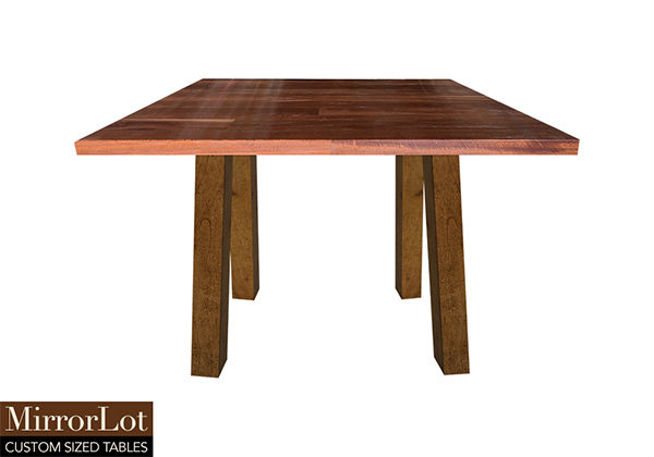 This natural mahogany table brings rustic charm to any room in your house. It is square, but can be customized to your desired shape and size. The square shape table top is made from solid mahogany wood and the table legs are