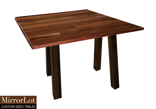 This natural mahogany table brings rustic charm to any room in your house. It is square, but can be customized to your desired shape and size. The square shape table top is made from solid mahogany wood and the table legs are