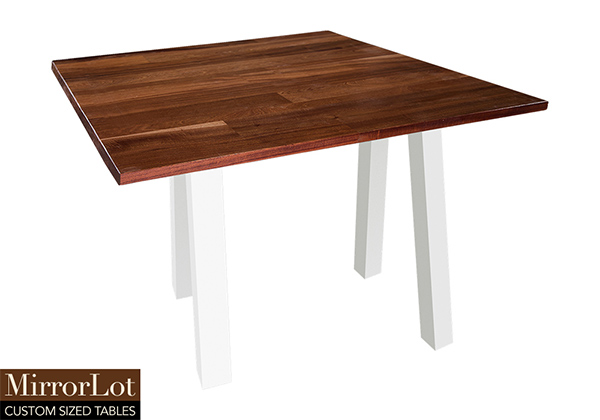 This natural mahogany table brings rustic charm to any room in your house. It is square, but can be customized to your desired shape and size. The square shape table top is made from solid mahogany wood and the table legs are