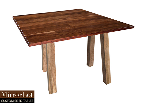This natural mahogany table brings rustic charm to any room in your house. It is square, but can be customized to your desired shape and size. The square shape table top is made from solid mahogany wood and the table legs are