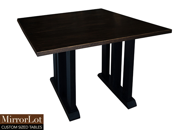 This dark kona brown/espresso table is simple, yet has a classic look that never goes out of style. It is square, but can be customized to your desired shape and size. The square shape table top is made from solid poplar wood and the table legs are