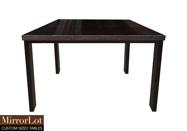 This dark kona brown/espresso table is simple, yet has a classic look that never goes out of style. It is square, but can be customized to your desired shape and size. The square shape table top is made from solid poplar wood and the table legs are