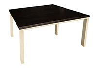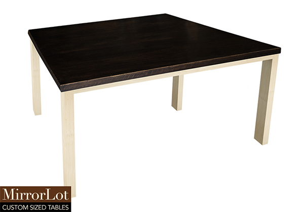 This dark kona brown/espresso table is simple, yet has a classic look that never goes out of style. It is square, but can be customized to your desired shape and size. The square shape table top is made from solid poplar wood and the table legs are
