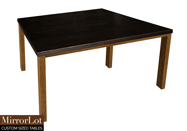 This dark kona brown/espresso table is simple, yet has a classic look that never goes out of style. It is square, but can be customized to your desired shape and size. The square shape table top is made from solid poplar wood and the table legs are