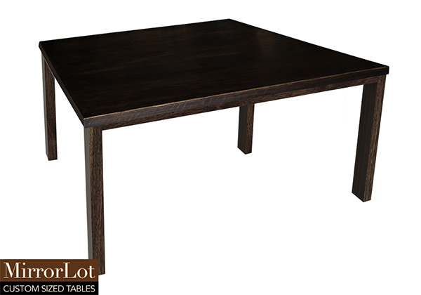 This dark kona brown/espresso table is simple, yet has a classic look that never goes out of style. It is square, but can be customized to your desired shape and size. The square shape table top is made from solid poplar wood and the table legs are