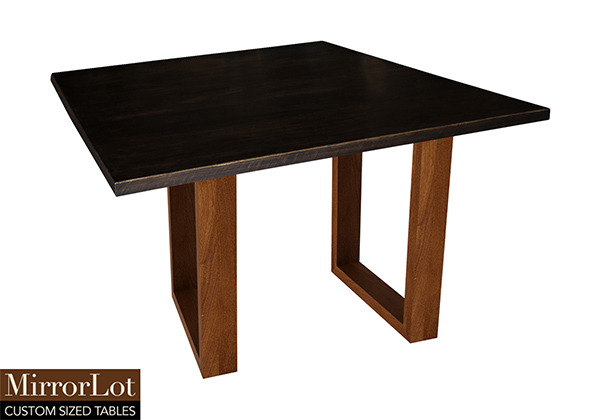 This dark kona brown/espresso table is simple, yet has a classic look that never goes out of style. It is square, but can be customized to your desired shape and size. The square shape table top is made from solid poplar wood and the table legs are
