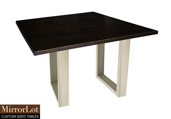 This dark kona brown/espresso table is simple, yet has a classic look that never goes out of style. It is square, but can be customized to your desired shape and size. The square shape table top is made from solid poplar wood and the table legs are
