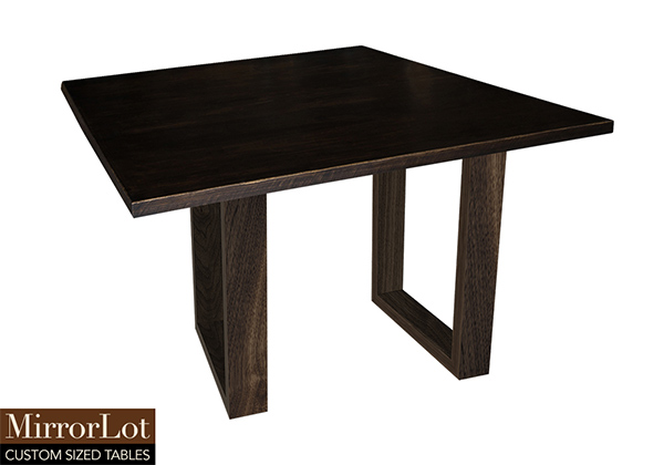 This dark kona brown/espresso table is simple, yet has a classic look that never goes out of style. It is square, but can be customized to your desired shape and size. The square shape table top is made from solid poplar wood and the table legs are