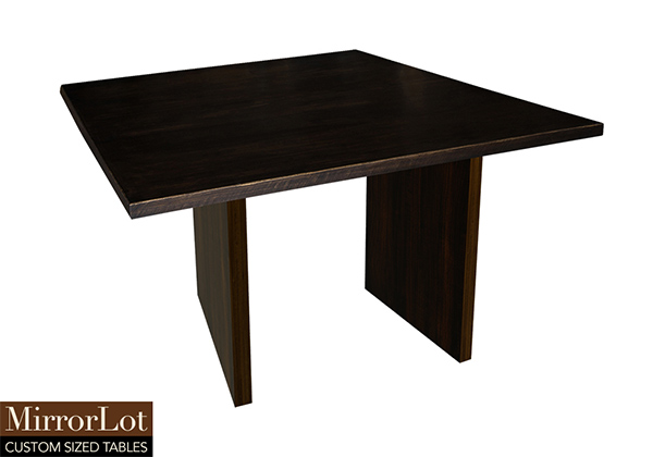 This dark kona brown/espresso table is simple, yet has a classic look that never goes out of style. It is square, but can be customized to your desired shape and size. The square shape table top is made from solid poplar wood and the table legs are