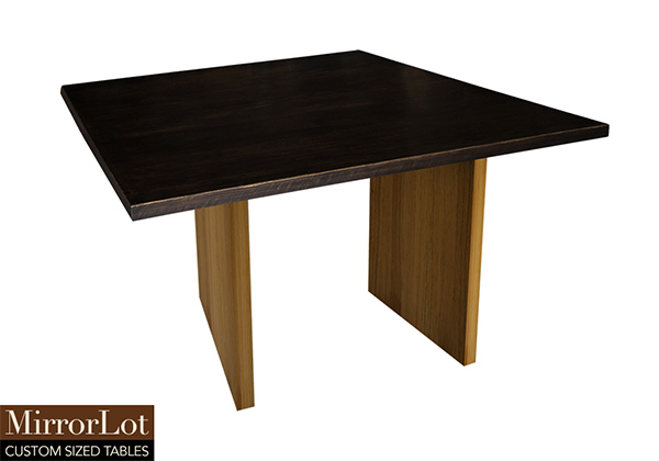 This dark kona brown/espresso table is simple, yet has a classic look that never goes out of style. It is square, but can be customized to your desired shape and size. The square shape table top is made from solid poplar wood and the table legs are