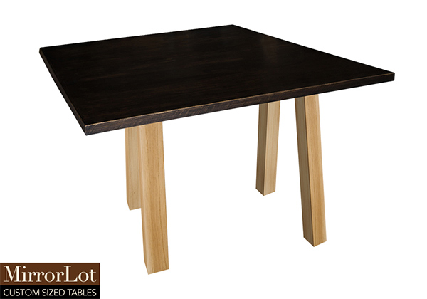 This dark kona brown/espresso table is simple, yet has a classic look that never goes out of style. It is square, but can be customized to your desired shape and size. The square shape table top is made from solid poplar wood and the table legs are