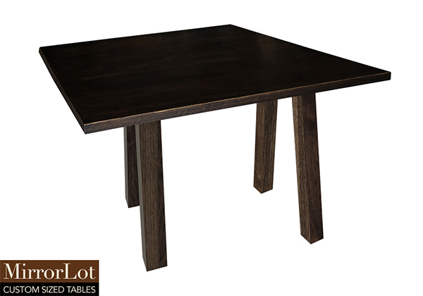 This dark kona brown/espresso table is simple, yet has a classic look that never goes out of style. It is square, but can be customized to your desired shape and size. The square shape table top is made from solid poplar wood and the table legs are