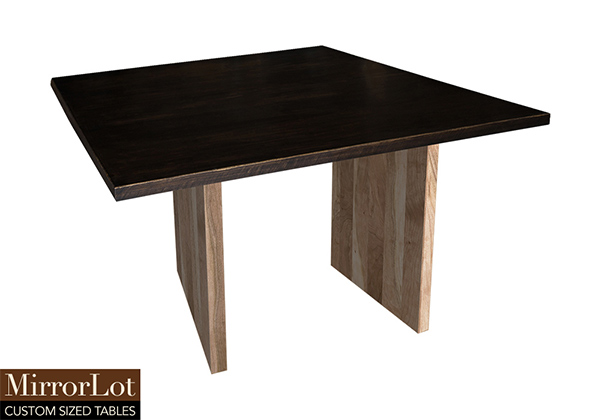 This dark kona brown/espresso table is simple, yet has a classic look that never goes out of style. It is square, but can be customized to your desired shape and size. The square shape table top is made from solid poplar wood and the table legs are