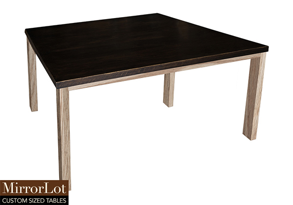 This dark kona brown/espresso table is simple, yet has a classic look that never goes out of style. It is square, but can be customized to your desired shape and size. The square shape table top is made from solid poplar wood and the table legs are