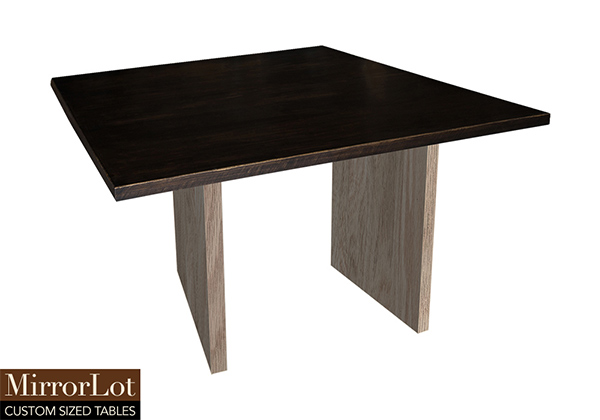 This dark kona brown/espresso table is simple, yet has a classic look that never goes out of style. It is square, but can be customized to your desired shape and size. The square shape table top is made from solid poplar wood and the table legs are