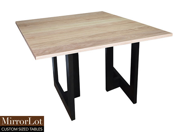 This natural red oak table brings rustic charm to any room in your house. It is square but can be customized to your desired shape and size. The square shape table top is made from solid red oak wood and the table legs are