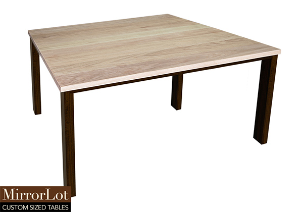 This natural red oak table brings rustic charm to any room in your house. It is square but can be customized to your desired shape and size. The square shape table top is made from solid red oak wood and the table legs are