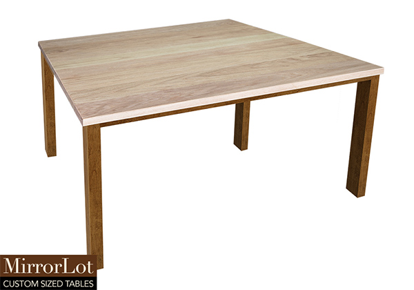 This natural red oak table brings rustic charm to any room in your house. It is square but can be customized to your desired shape and size. The square shape table top is made from solid red oak wood and the table legs are