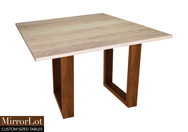 This natural red oak table brings rustic charm to any room in your house. It is square but can be customized to your desired shape and size. The square shape table top is made from solid red oak wood and the table legs are