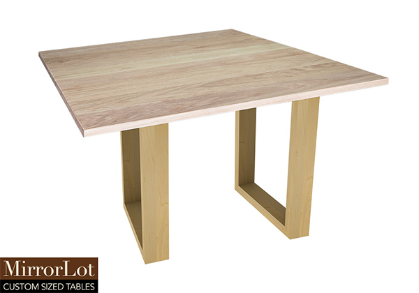 This natural red oak table brings rustic charm to any room in your house. It is square but can be customized to your desired shape and size. The square shape table top is made from solid red oak wood and the table legs are