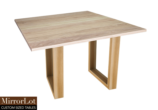 This natural red oak table brings rustic charm to any room in your house. It is square but can be customized to your desired shape and size. The square shape table top is made from solid red oak wood and the table legs are