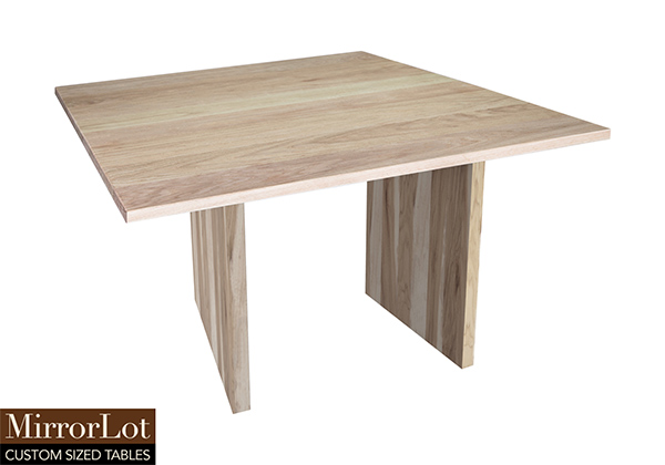 This natural red oak table brings rustic charm to any room in your house. It is square but can be customized to your desired shape and size. The square shape table top is made from solid red oak wood and the table legs are