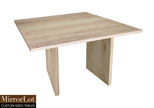 This natural red oak table brings rustic charm to any room in your house. It is square but can be customized to your desired shape and size. The square shape table top is made from solid red oak wood and the table legs are