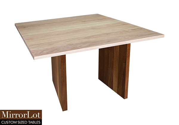This natural red oak table brings rustic charm to any room in your house. It is square but can be customized to your desired shape and size. The square shape table top is made from solid red oak wood and the table legs are