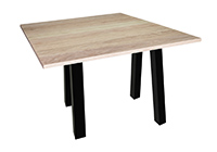 This natural red oak table brings rustic charm to any room in your house. It is square but can be customized to your desired shape and size. The square shape table top is made from solid red oak wood and the table legs are