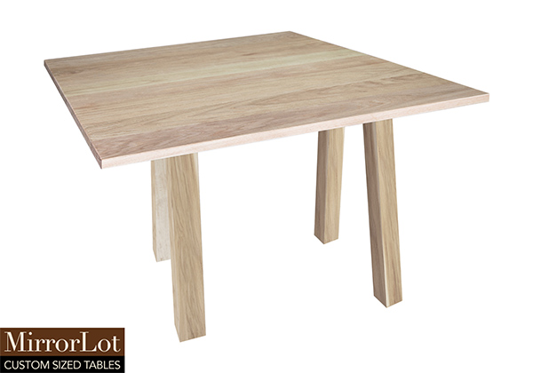 This natural red oak table brings rustic charm to any room in your house. It is square but can be customized to your desired shape and size. The square shape table top is made from solid red oak wood and the table legs are