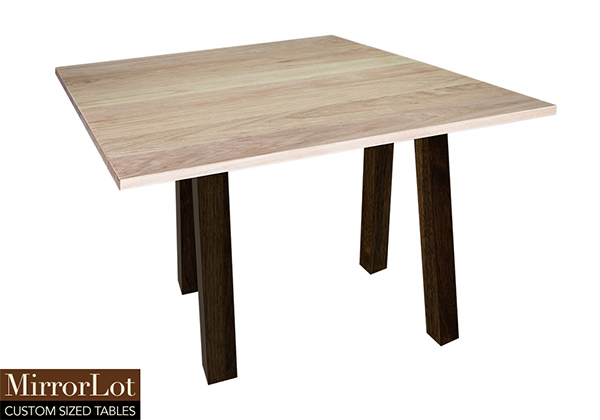 This natural red oak table brings rustic charm to any room in your house. It is square but can be customized to your desired shape and size. The square shape table top is made from solid red oak wood and the table legs are