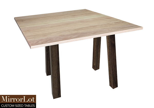 This natural red oak table brings rustic charm to any room in your house. It is square but can be customized to your desired shape and size. The square shape table top is made from solid red oak wood and the table legs are