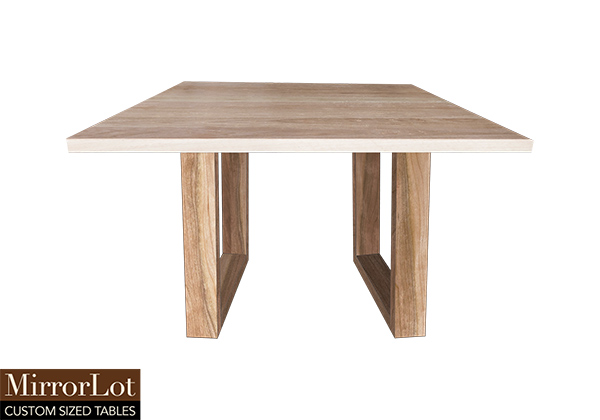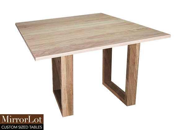 This natural red oak table brings rustic charm to any room in your house. It is square but can be customized to your desired shape and size. The square shape table top is made from solid red oak wood and the table legs are