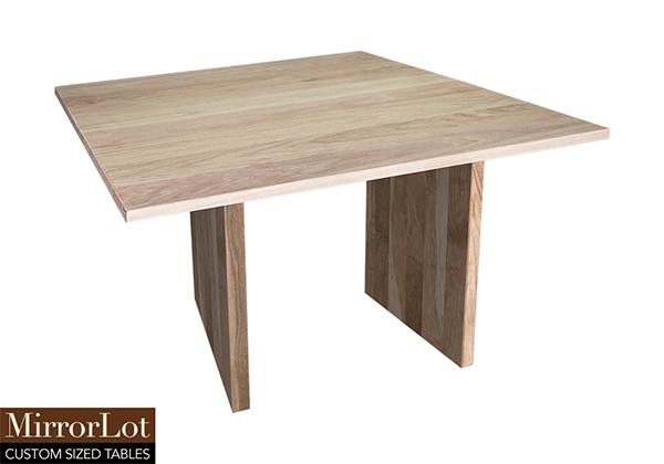 This natural red oak table brings rustic charm to any room in your house. It is square but can be customized to your desired shape and size. The square shape table top is made from solid red oak wood and the table legs are