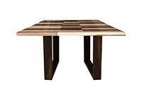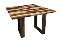 This mixed wood table is a combination natural mahogany, walnut, and poplar. It displays a contemporary design with a rustic flair. It is square, but can be customized to your desired shape and size. The square shape table top is made from solid walnut, mahogany, poplar wood and the table legs are