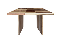 This mixed wood table is a combination natural mahogany, walnut, and poplar. It displays a contemporary design with a rustic flair. It is square, but can be customized to your desired shape and size. The square shape table top is made from solid walnut, mahogany, poplar wood and the table legs are
