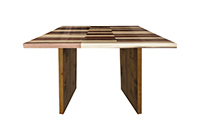 This mixed wood table is a combination natural mahogany, walnut, and poplar. It displays a contemporary design with a rustic flair. It is square, but can be customized to your desired shape and size. The square shape table top is made from solid walnut, mahogany, poplar wood and the table legs are