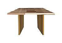 This mixed wood table is a combination natural mahogany, walnut, and poplar. It displays a contemporary design with a rustic flair. It is square, but can be customized to your desired shape and size. The square shape table top is made from solid walnut, mahogany, poplar wood and the table legs are