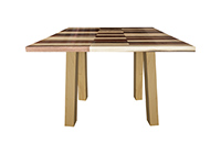 This mixed wood table is a combination natural mahogany, walnut, and poplar. It displays a contemporary design with a rustic flair. It is square, but can be customized to your desired shape and size. The square shape table top is made from solid walnut, mahogany, poplar wood and the table legs are