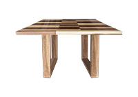 This mixed wood table is a combination natural mahogany, walnut, and poplar. It displays a contemporary design with a rustic flair. It is square, but can be customized to your desired shape and size. The square shape table top is made from solid walnut, mahogany, poplar wood and the table legs are