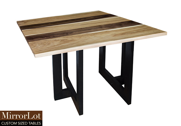 This natural walnut and pecan hickory table brings rustic charm to any room in your house. It is a square table, but can be customized to your desired shape and size. The square shape table top is made from solid walnut, pecan hickory wood and the table legs are
