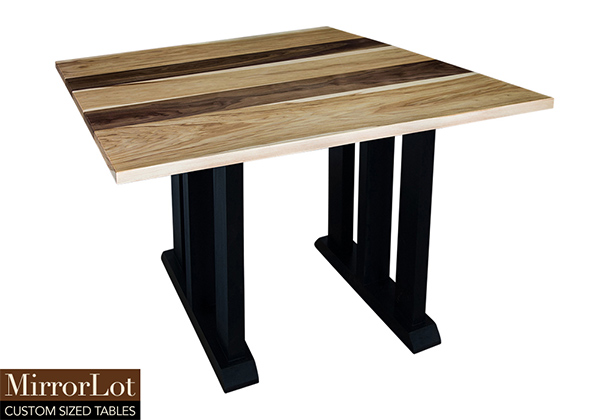 This natural walnut and pecan hickory table brings rustic charm to any room in your house. It is a square table, but can be customized to your desired shape and size. The square shape table top is made from solid walnut, pecan hickory wood and the table legs are
