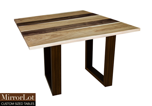 This natural walnut and pecan hickory table brings rustic charm to any room in your house. It is a square table, but can be customized to your desired shape and size. The square shape table top is made from solid walnut, pecan hickory wood and the table legs are