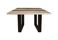 This natural walnut and pecan hickory table brings rustic charm to any room in your house. It is a square table, but can be customized to your desired shape and size. The square shape table top is made from solid walnut, pecan hickory wood and the table legs are