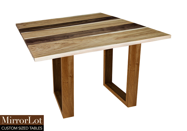 This natural walnut and pecan hickory table brings rustic charm to any room in your house. It is a square table, but can be customized to your desired shape and size. The square shape table top is made from solid walnut, pecan hickory wood and the table legs are