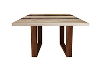 This natural walnut and pecan hickory table brings rustic charm to any room in your house. It is a square table, but can be customized to your desired shape and size. The square shape table top is made from solid walnut, pecan hickory wood and the table legs are