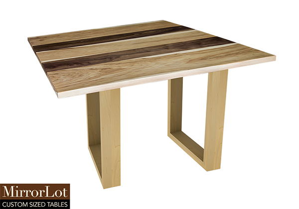 This natural walnut and pecan hickory table brings rustic charm to any room in your house. It is a square table, but can be customized to your desired shape and size. The square shape table top is made from solid walnut, pecan hickory wood and the table legs are